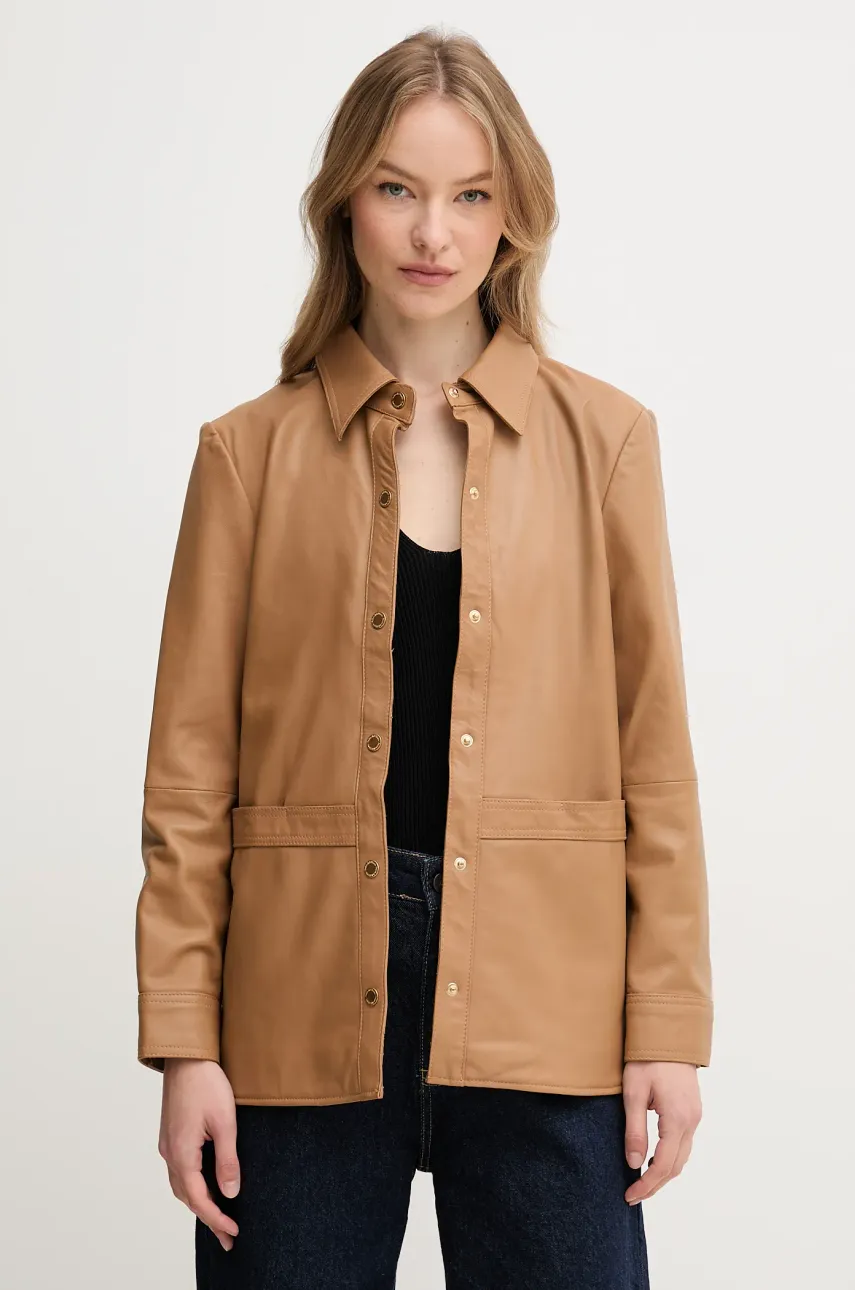 Δερμάτινο μπουφάν Pedro del Hierro χρώμα: καφέ, 5499140